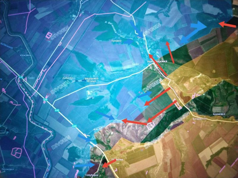 Подразделения 3-й армии и добровольческого корпуса «Южной» группировки войск продолжают вести ожесточённые встречные бои в районах Майское – Веролюбовка, Приволье – Миньковка – Новомарково, где противник упорно контратакует с высот западнее и северо-западнее. В ВСУ прекрасно понимают, что на этом участке до Славянско-Краматорской агломерации нашим войскам вдоль трассы остаётся самое короткое расстояние (около 16 км), и поэтому стремятся не допустить прорыва на высоты и за канал Северский Донец – Донбасс.