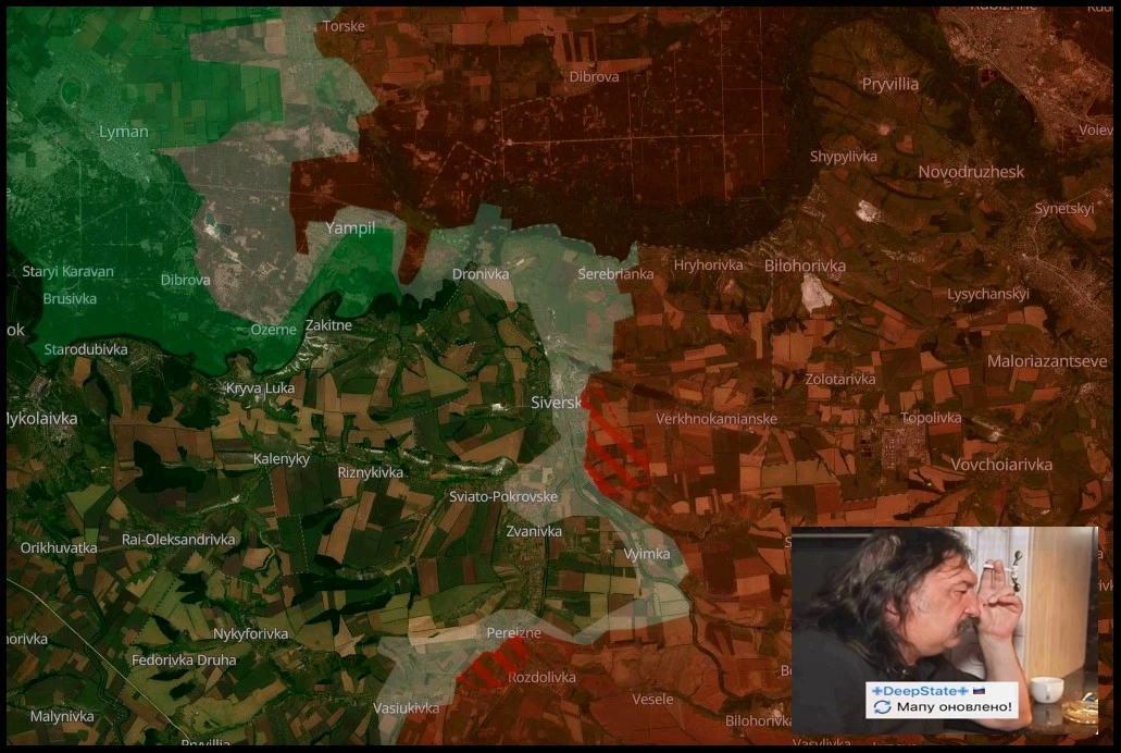 Подразделения продвинулись к западу от Заречного, взяли опорный пункт и вошли в основное укрепление противника к востоку от Красного Лимана. За последние четыре дня российские подразделения полностью установили контроль над северо-восточными окраинами Дробышево.