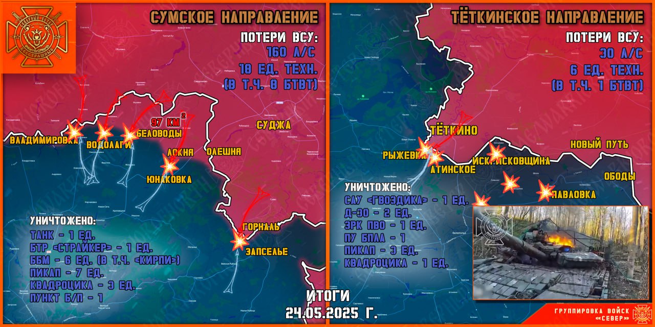 Сводка Министерства обороны Российской Федерации о ходе проведения специальной военной операции по состоянию на 25 мая 2025 г.