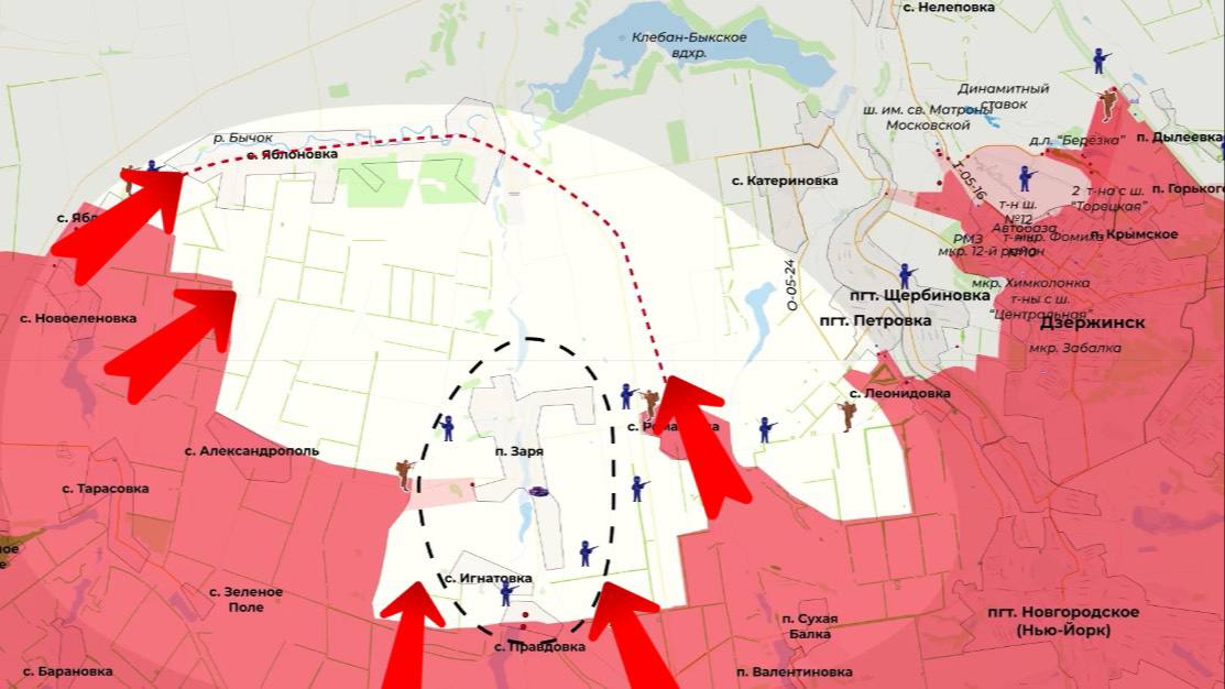 Южнее Зари от Правдовки мы продвинулись широким флангом. Идёт работа по вражеским опорникам на данном участке. Также мы штурмуем и у Яблоновки с перспективой последующего выхода на водохранилище и замыкание врага в кольцо. От Ново-Полтавки разбиваем наступление на Дружковку, продвинулись на 2,5 километра с занятием лесопосадок и взятием двух вражеских укрепов, пишет Телеграм-канал «Дневник десантника».