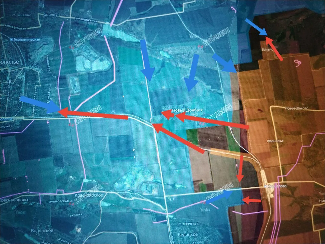 Аналогичная ситуация и северо-западнее Ивановки, и в районе Нового Донбасса, где продолжаются тяжёлые бои. Ни одна из сторон пока не имеет устойчивого преимущества. В районе Суворово идут позиционные бои, село в «серой зоне», ВСУ также продолжают переброску через Сухецкое.