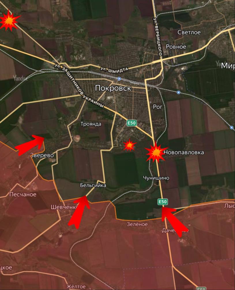 С южной стороны Покровского направления мы наносим удары по позициям и огневым точкам ВСУ на окраине Покровска, тем самым истощая вражеские резервы перед штурмовыми действиями. Активно работают наши огнеметные системы «Солнцепёк», в Новопавловке термобаррами ликвидировали позиции врага, которые готовились к контратакующим действиям на наши позиции у Даченского. Реактивная артиллерия ВС РФ из «Урагана» поразила два пункта дислокации в лесопосадке между Першотравневым и Новопавловкой, отсюда враг вёл атаки на Шевченко. Идёт активная контрбатарейная борьба, воздушной разведкой юго-западнее Васильевки иксоводы уничтожили самоходную артиллерийскую установку натовского производства, замаскированную в лесопосадке, пишет Телеграм-канал «Дневник десантника».
