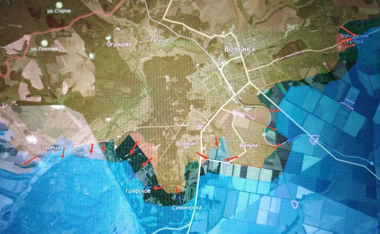 Волчанский участок. Подразделения группировки войск «Север» продолжают развивать наступление южнее и восточнее Волчанска. ВС РФ подвинули противника в Волчанских Хуторах со стороны западной части и с севера (со стороны Тихого). Половина села – за нашими подразделениями, а также отделение почты, район кладбища и почти вся улица Н.Парасола. Противник упорно оказывает упорное сопротивление в районе школы.