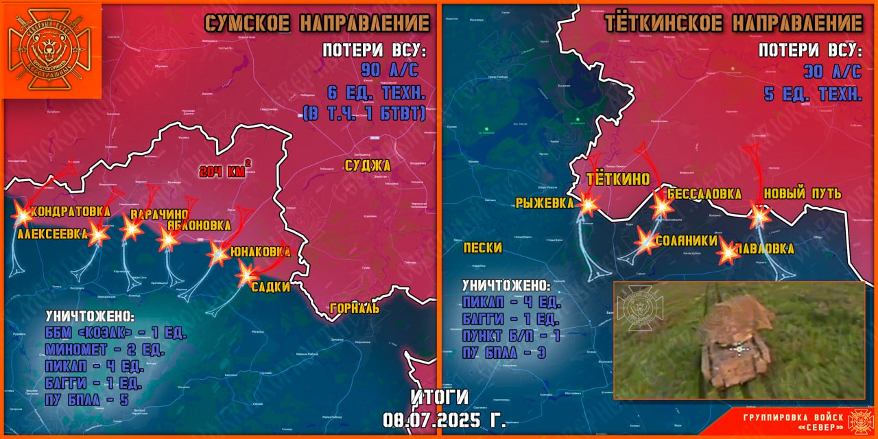 Сводка Министерства обороны Российской Федерации о ходе проведения специальной военной операции по состоянию на 9 июля 2025 г.