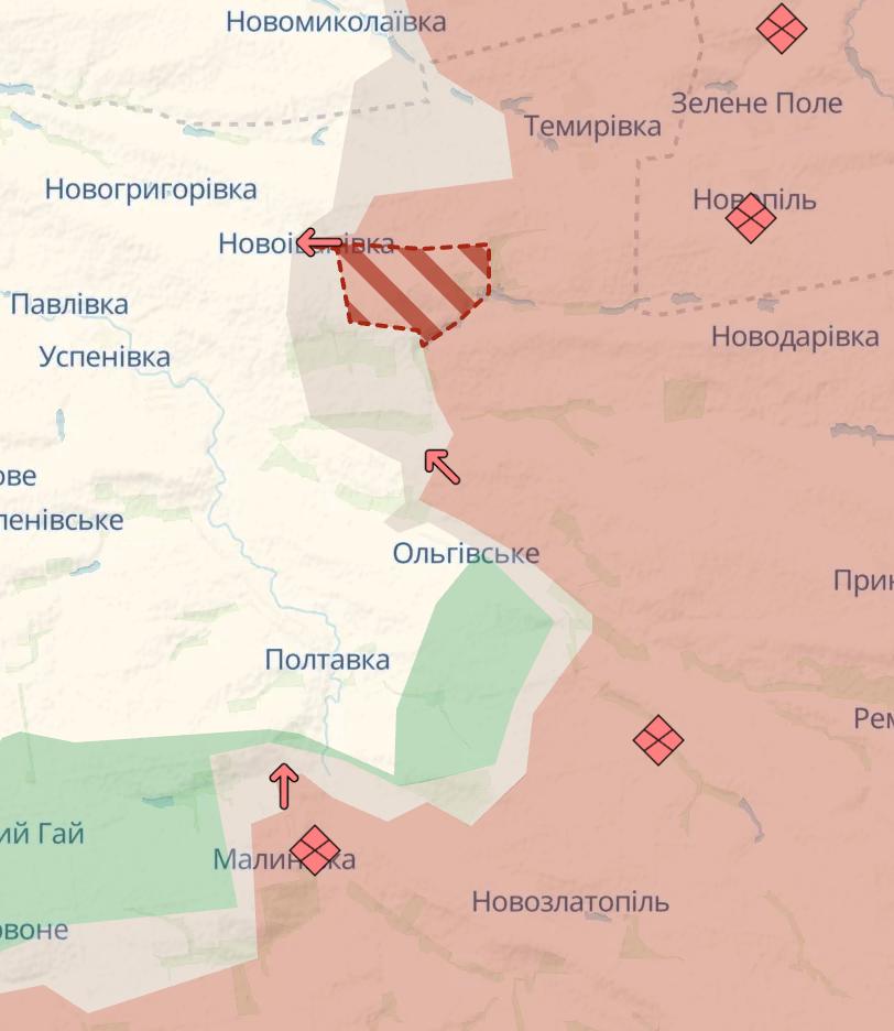На Южнодонецком направлении продолжаются активные бои в районе Гуляйполя. После освобождения Ольговского ВС России продвигаются в направлении крупного логистического узла ВСУ – Успеновки: идут бои в районе Полтавки. По сведениям источников, войска РФ занимают новые позиции в жилой застройке Новоивановки, а также выходят к южным окраинам Калиновского, пишет Телеграм-канал WarGonzo.