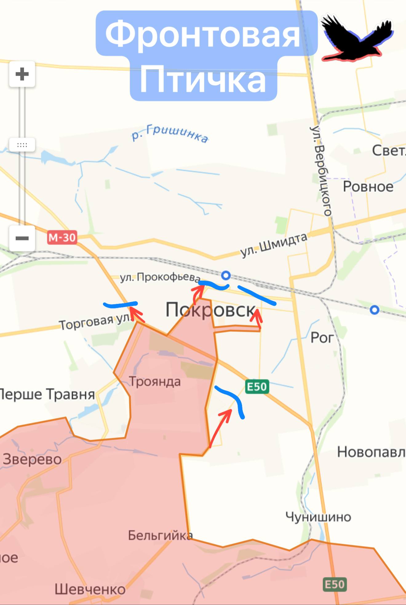В Покровске идут тяжёлые бои в районе улицы Прокофьева у железнодорожных путей. С обеих сторон работают FPV-дроны, высокая плотность огня. В районе улицы Торговой горит бронетехника противника. Сообщается также о работе нашей авиации и ударах по позициям противника в районе населённого пункта Первого мая, пишет Телеграм-канал «Фронтовая птичка».