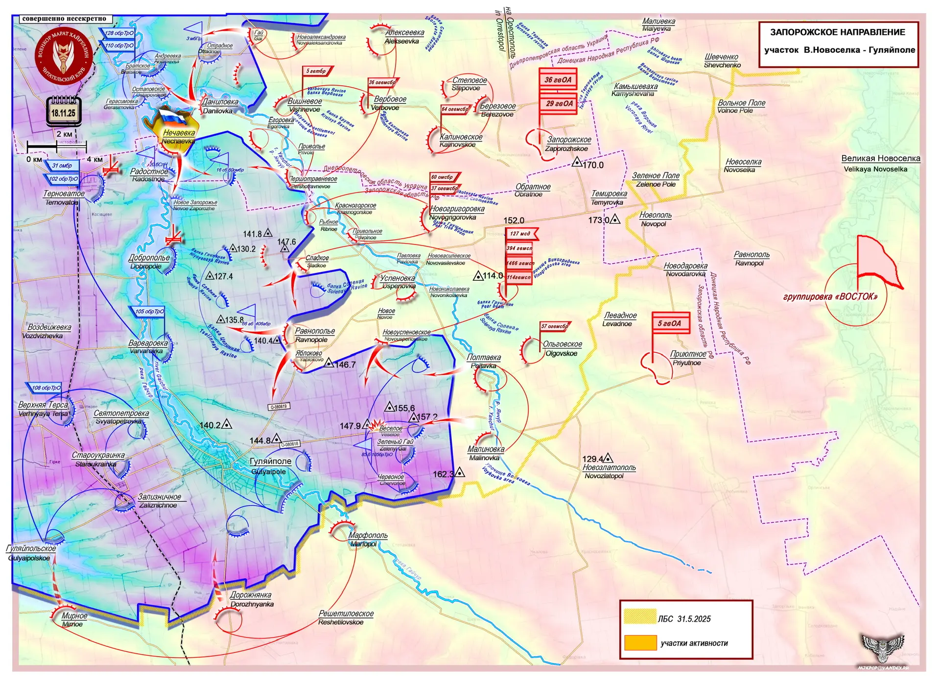 На Запорожском направлении ничего неожиданного – все в логике обстановки. Давлением на север вышли на линию Гай – Волчье – Орестополь и обеспечили свой правый фланг.