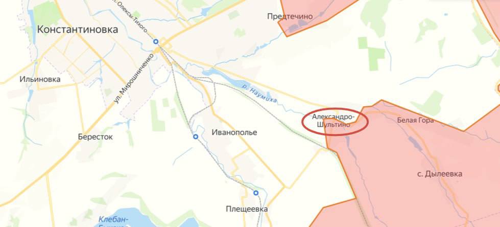 Минобороны РФ сообщило об освобождении села Александро-Шультино под Константиновкой от присутствия ВСУ. Тем не менее, фронт по рубежу Предтечино – Александро-Шультино ещё не выровнен для последующего наступления на город широким фронтом. Карман между реками Наумиха и Грузская ещё предстоит зачистить, пишет военкор Тимофей Ермаков.