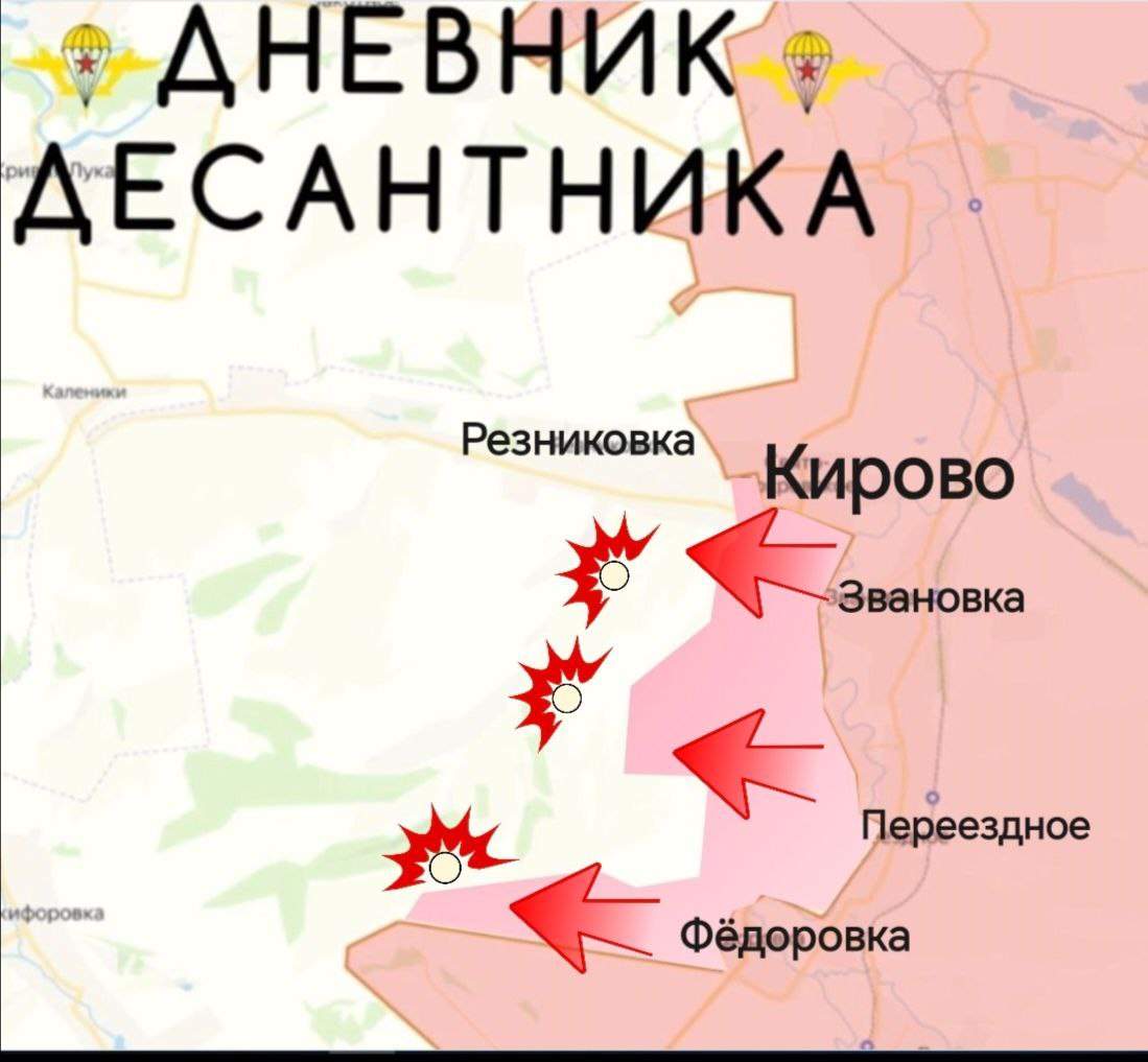 Южный участок. С этого участка развиваем наступление на Славянск. Есть продвижение южнее Кирово (Свято-Покровского). В самом Кирово идут бои. Ждём подтверждения по изменению линии боевого соприкосновения. Сегодня Генштаб ВСУ официально признавал потерю города Северск, пишет Телеграм-канал «Дневник десантника».