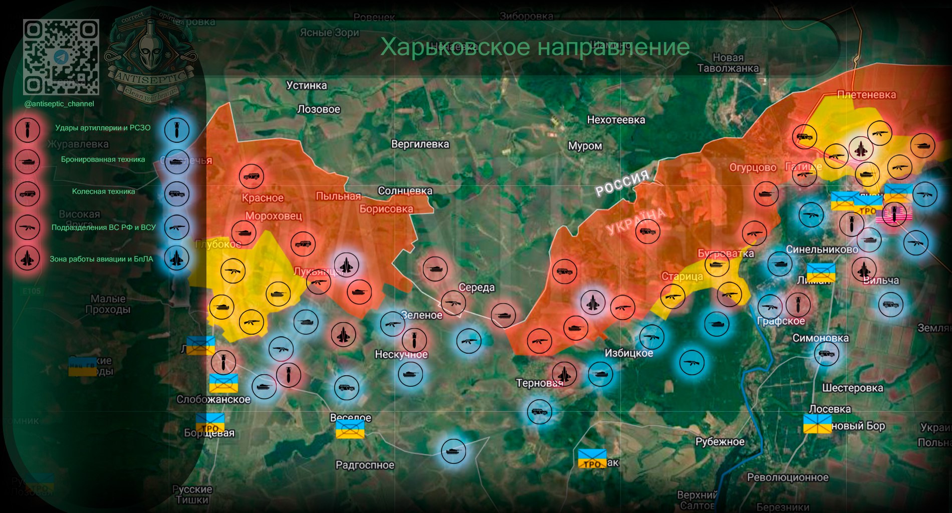 Обе стороны активнейшим образом применяют FPV-дроны, что существенно осложняет продвижение. ВС России занимаются уничтожением живой силы и техники противника. За последние несколько дней появились десятки подтверждений уничтожения военной техники ВСУ. Полноценное восполнение потерь пока представляется малореальным, пишет Телеграм-канал ANTISEPTIC.