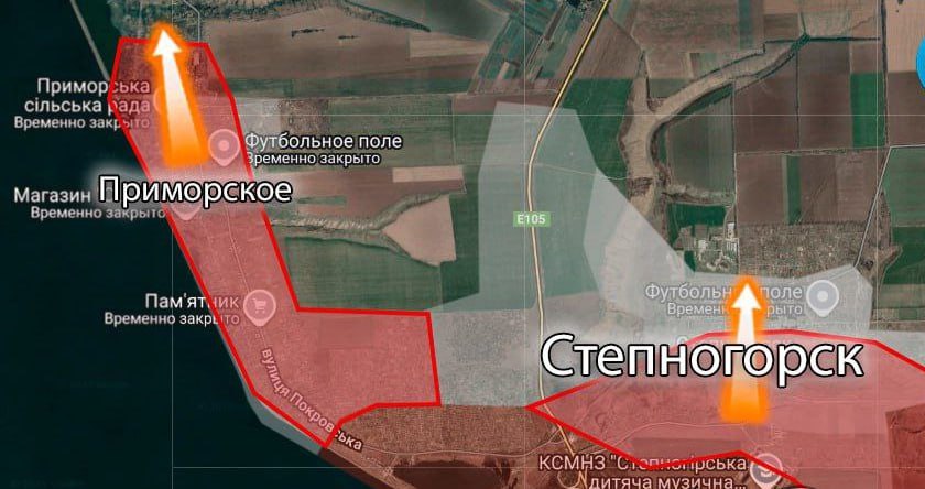 Десантные подразделения, овладевшие ранее Плавнями, сейчас контролируют около 75% территории посёлка Приморское на берегу Каховского водохранилища. С украинской стороны предпринимаются попытки контратаковать с северо-запада. Основные усилия сосредоточены на Степногорске, большая часть которого взята силами ВДВ. Десантники заняли центр, а также южную и восточную части города, где закрепились в многоэтажных домах, используя их в качестве плацдармов для атаки в северном направлении. Бои носят позиционный характер, сражения идут за каждое здание. Для противодействия наступлению ВСУ ранее ввели в эти районы дополнительные резервы, пытаясь контратаками замедлить продвижение российских частей, пишут военнослужащие 105-го стрелкового полка в своём Телеграм-канале.