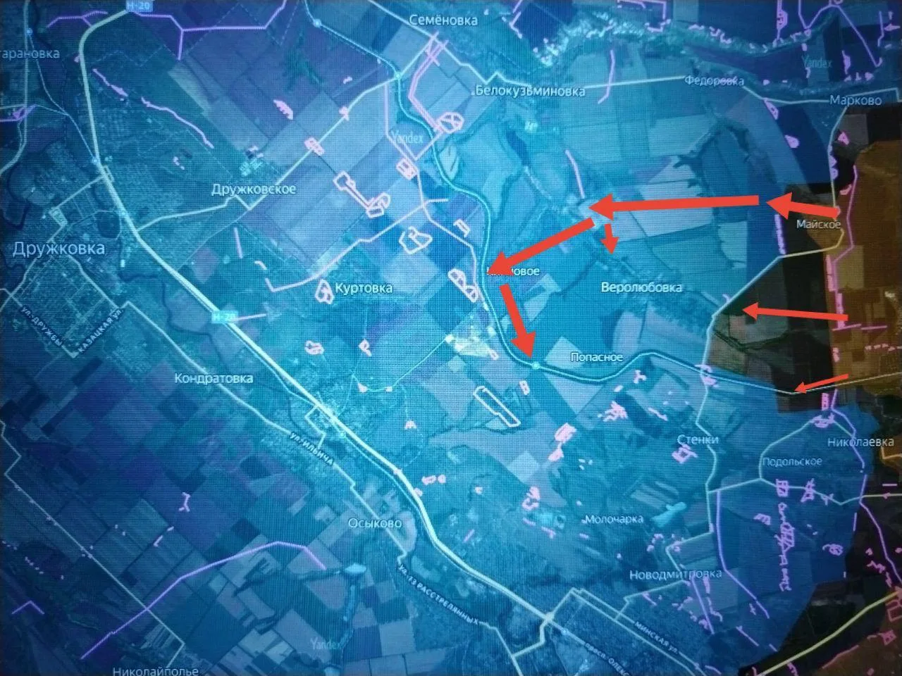 Подразделения группировки войск «Юг» продолжают наступление на Краматорском направлении, используя прорыв в районе Майского. После освобождения Клинового наши подразделения продолжили продвигаться вдоль железной дороги навстречу подразделениям, атакующим у окраин Веролюбовки, и взяли Безымянное. Над охваченной с трёх сторон Веролюбовкой возникла опасность окружения. Само по себе вклинение в оборонительные порядки противника на этом участке в 3,5-4 км от Алексеево-Дружковки создаётся для противника очень опасную ситуацию. Ниже на высотах опорный пункт противника в Ижевске, а дальше – северная окраина Константиновки и восточная Алексеево-Дружковки, пишет военкор Юрий Котенок.