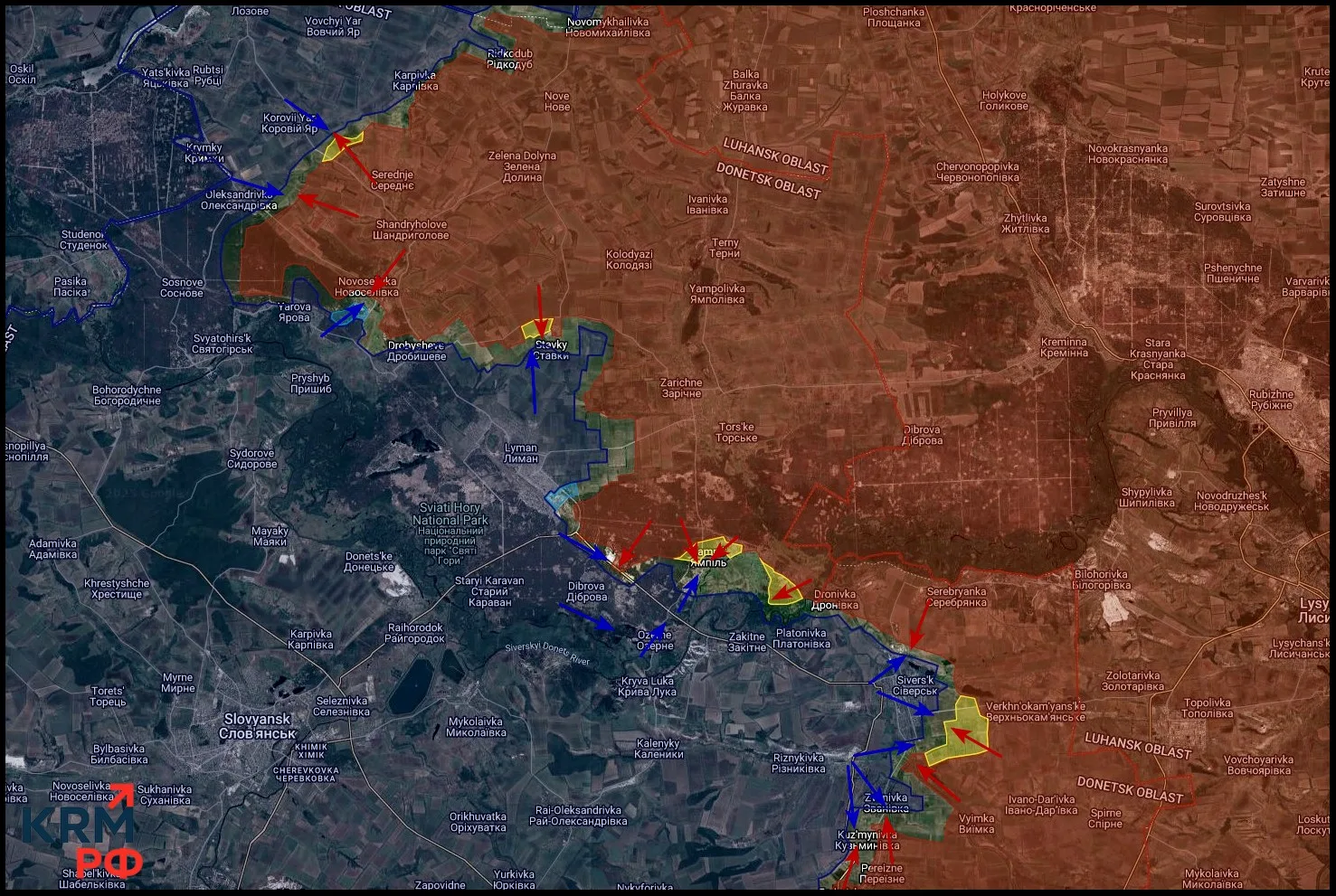 В районе Ямполя российские силы расширили зону контроля западнее населённого пункта в лесном массиве. Ранее противнику удалось деблокировать центральную дорогу и вывести из северной части остатки своих подразделений. Сейчас его силы фиксируются в южной части и за трассой Красный Лиман – Северск.