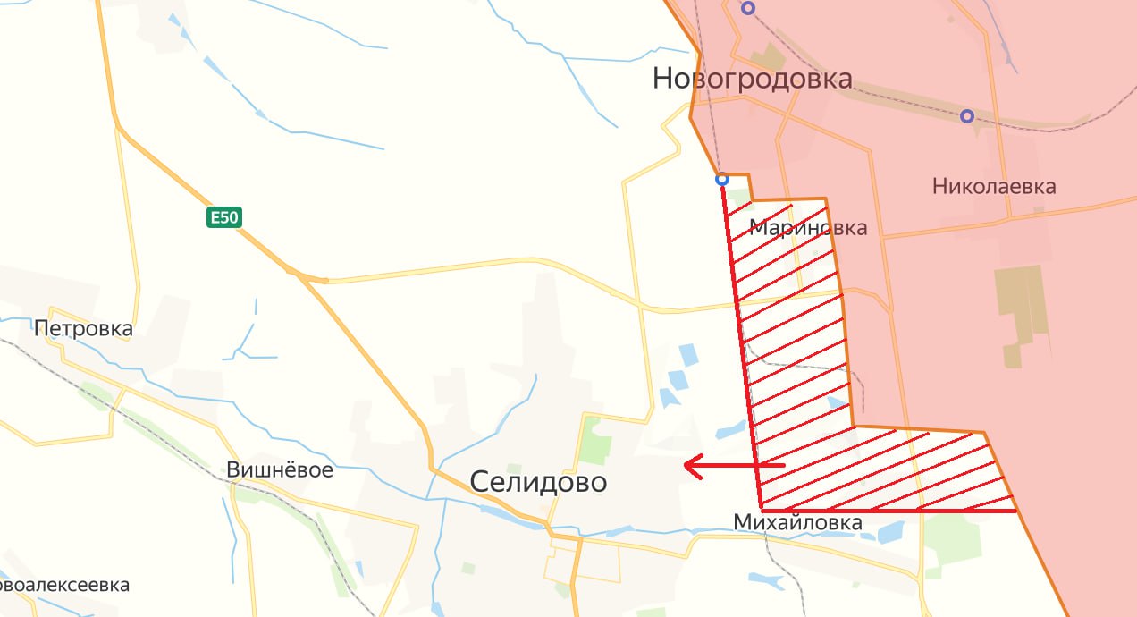 Ожидается, что Селидово будет освобождено также чисто, как и Новогродовка – за 3 дня и без каких-либо разрушений инфраструктуры. Такое уверенное продвижение объясняется ещё и тем, что все боеспособные и «элитные» подразделения ВСУ отправлены самоубиваться в курской авантюре.