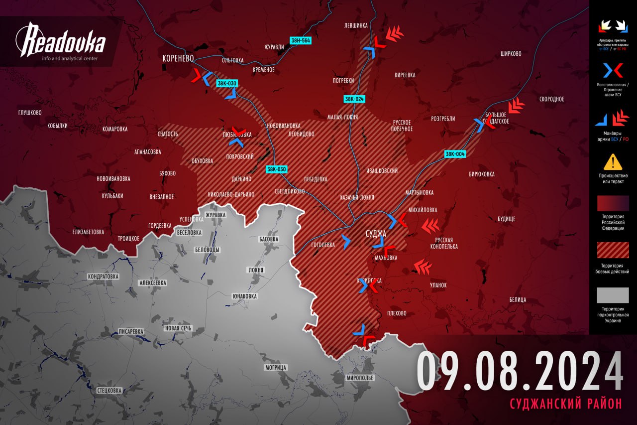 КУРСКОЕ направление: ситуация на 13:00 9 августа 2024 года.