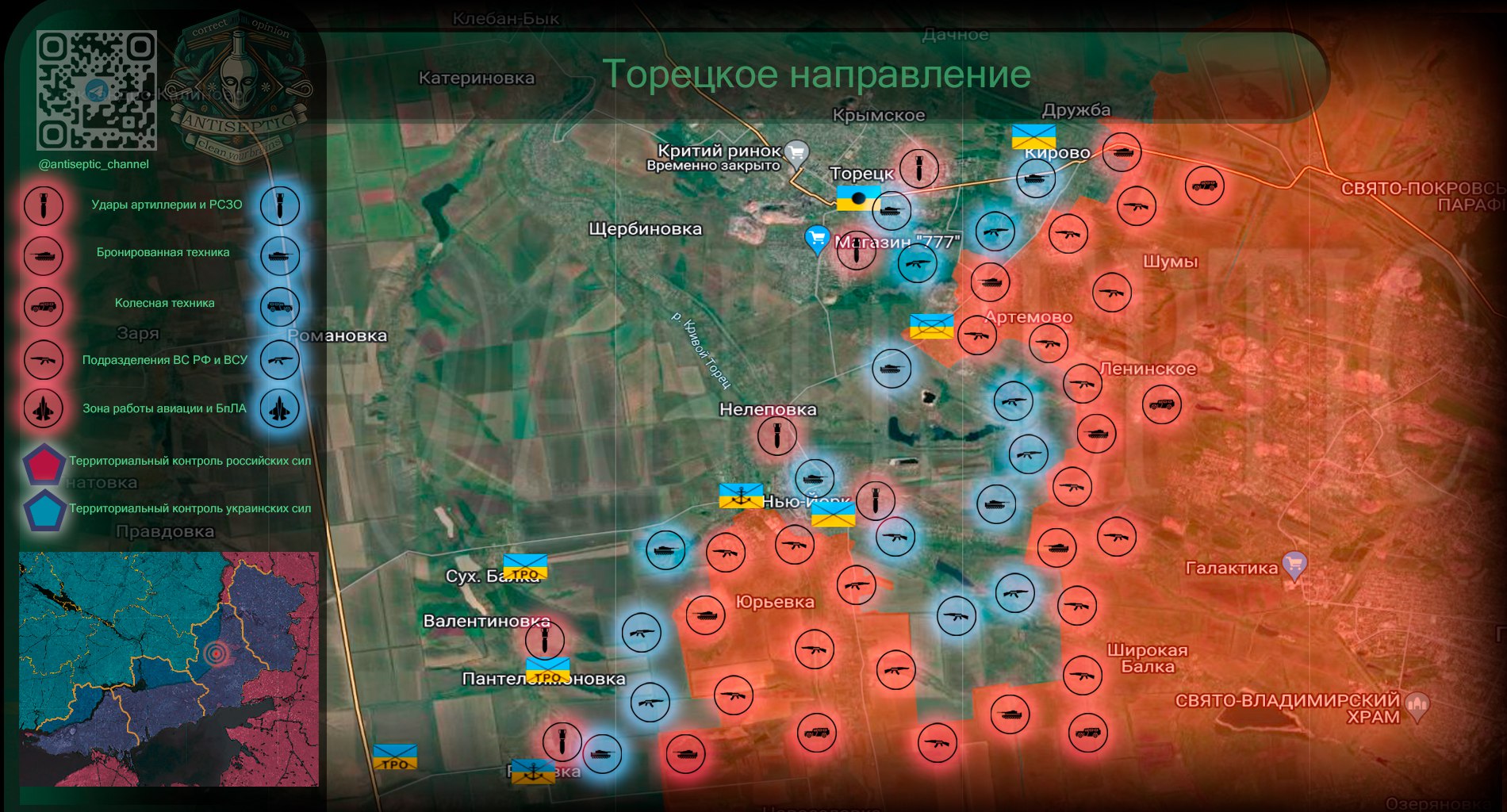 В районе Торецка идёт выравнивание фронта. Перед ВСУ стоит выбор: оставаться в огневом мешке между Нью-Йорком и городской застройкой или оставить позиции.