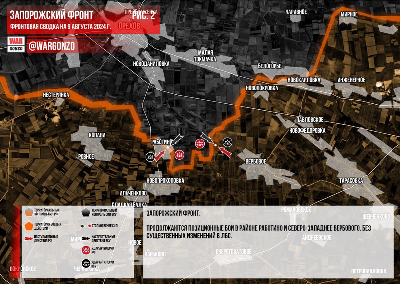 Продолжаются позиционные бои в районе Работино и северо-западнее Вербового. Без существенных изменений в ЛБС, сообщает Телеграм-канал WarGonzo.