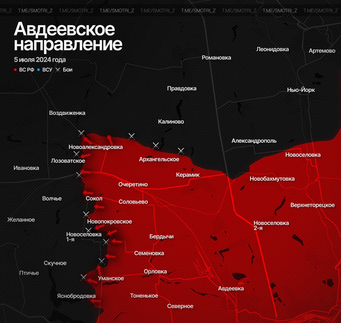 Завершена зачистка Сокола. ВС РФ развивают наступление севернее этого населённого пункта. Бои идут за Евгеньевку и Восход.