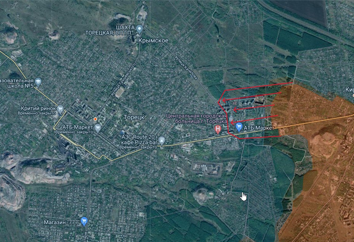 На Торецком направлении ВС РФ взяли под контроль н.п. Артёмово (Зализное/Железное), подойдя к Торецку между терриконом шахты им. Артёма и территорией подстанции «Центральная», с которой противник также был выбит.