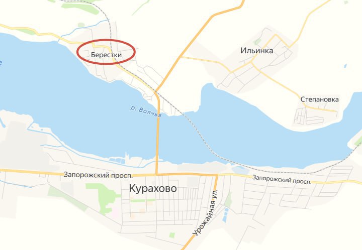 Берестки – село в Покровском районе бывшей Донецкой области с довоенным населением около 200 человек. Расположено на северном берегу Кураховского водохранилища. Теперь этот берег полностью под контролем группировки «Центр». В настоящий момент передовые подразделения российской армии обходят водоём с запада, со стороны Старых Тернов в сторону Дачного. Это позволит перерезать трассу на Запорожье, по которой снабжается гарнизон Курахово. Когда это произойдёт, противнику придётся выстраивать логистику через поля, отмечает военкор Александр Коц.