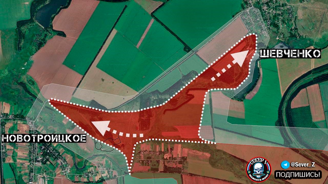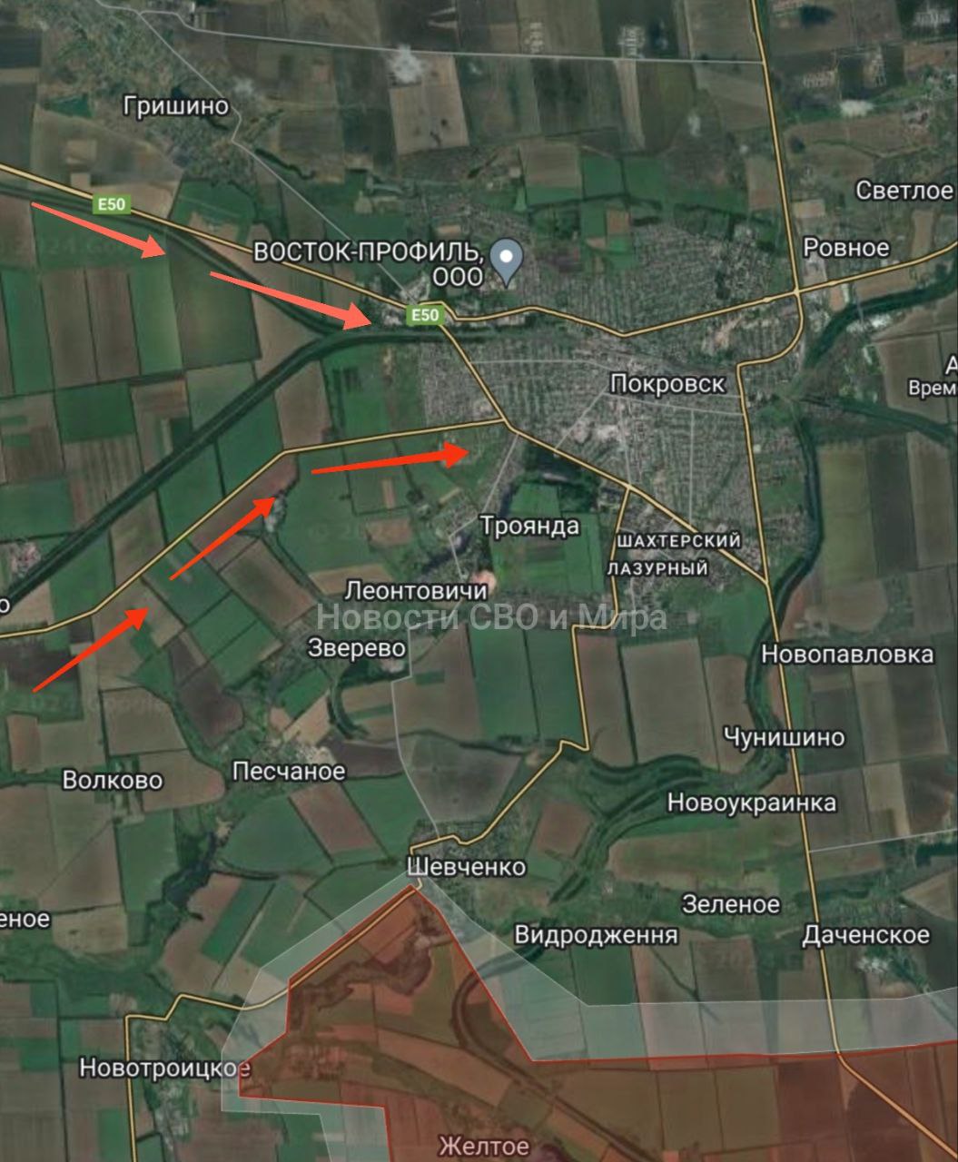 На Покровском (Красноармейском) направлении войска ВС России закрепились на западной окраине Шевченко, вдоль лесополосы севернее Новотроицкого и южнее, вдоль балки Сазоновка. В Заре бойцы ВС России продолжают атаки в западном направлении с восточной части населённого пункта.