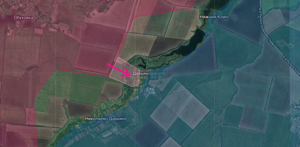 Бойцы 105-го полка НМ ДНР сообщили вчера вечером, что подразделения ВС России зашли в населённый пункт Дарьино в Курской области.
