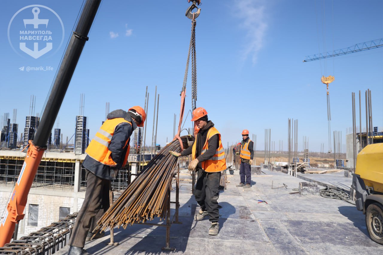 Строители делают монолитный каркас новой больницы в Мариуполе, пишет Телеграм-канал Мариуполь Навсегда.