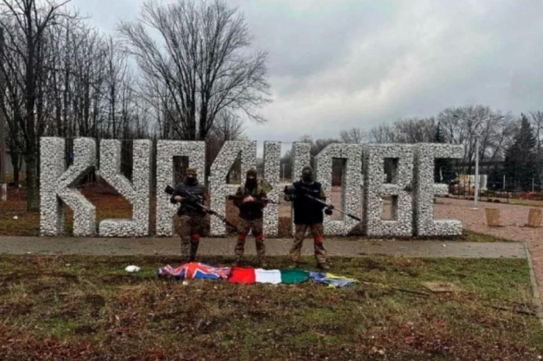 Заглавное фото: русские бойцы и трофейные флаги. Курахово. 3 января 2025 года.