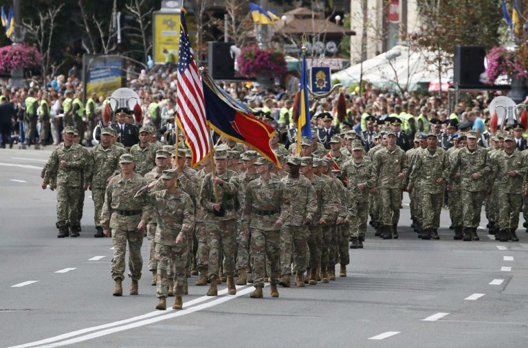Накануне парада в Киеве с участием военных стран НАТО, Грузии и Молдавии было замечено: «Если американцы обучают украинскую армию, их советники занимают кабинеты в СБУ и Минобороны, уже строят военные базы, то участие в военном параде – абсолютно логично. Следующий шаг – переход командования ВСУ в руки американских генералов и стратегов, как это было в Корее, Вьетнаме и других странах третьего мира, где обнаруживались интересы Вашингтона. Собственно, спецпредставители Госдепа, посол США и звёздно-полосатые генералы уже систематически ездят в т.н. АТО пока ещё не командовать, но наблюдать».