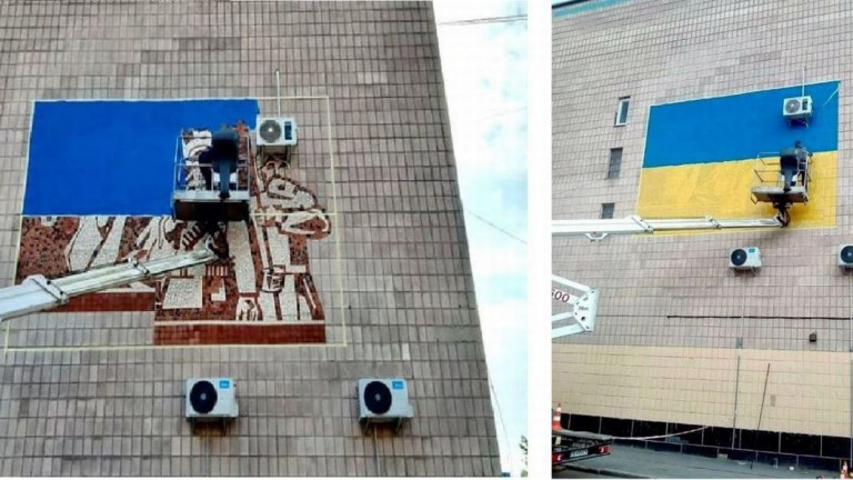 – 4 мая в столице той же области, переименованной в Кропивницкий, голова областной Рады Сергей Шульга радостно сообщил, что советская мозаика на стене Дома культуры, «напоминающая горожанам о советском прошлом», была закрашена в цвета национального флага. Странно, что не снесли сам Дом культуры, построенный тоже в советском прошлом.