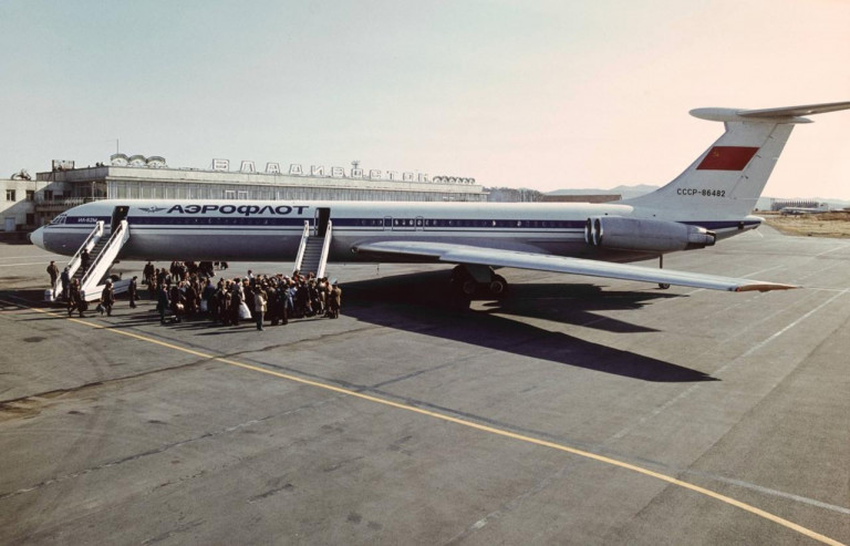 Заглавное фото. Ил-62 принимает пассажиров в аэропорту Владивостока