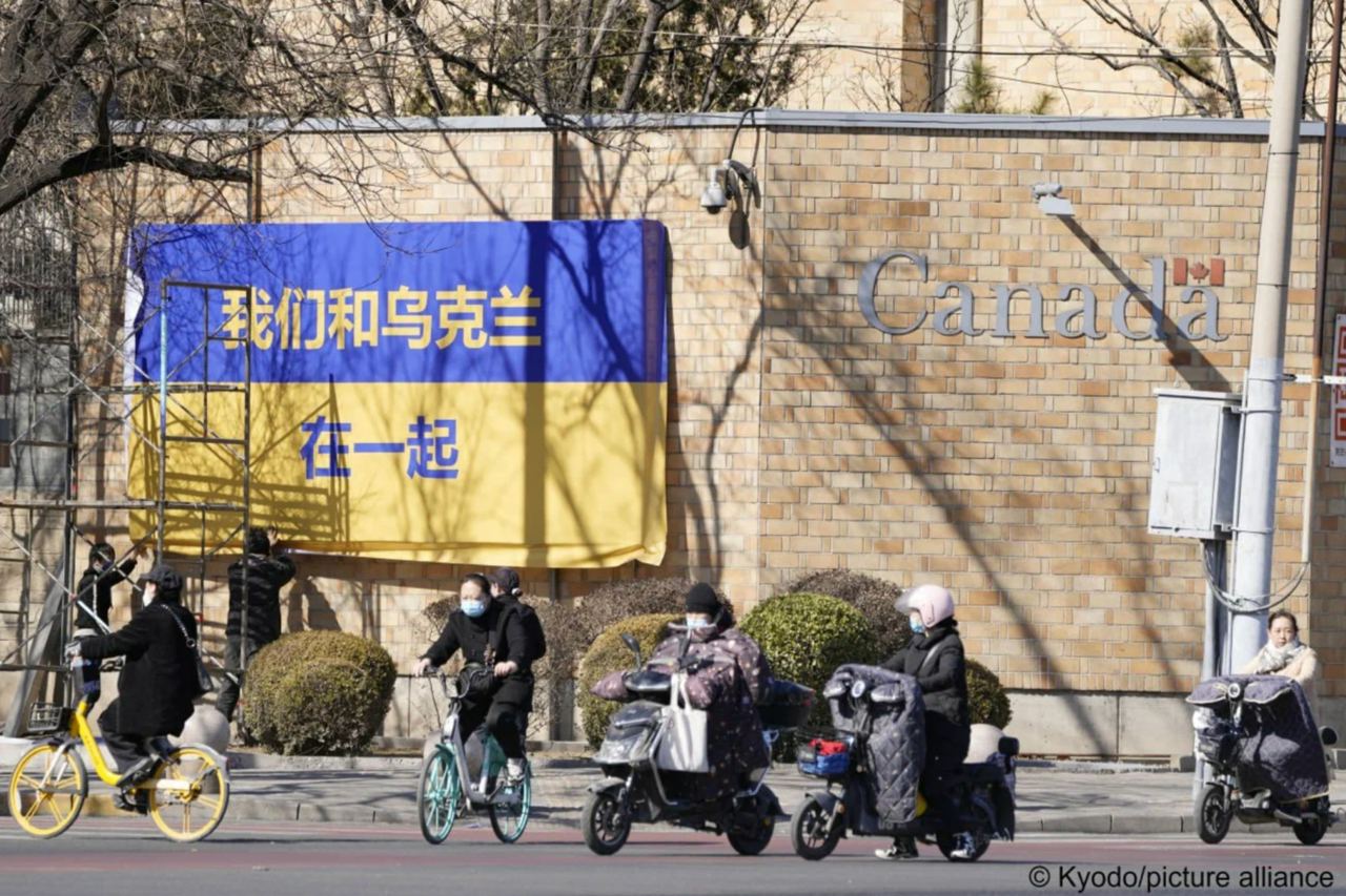 Ряд посольств выставили вывески с изображением флага Украины и надписями по-китайски и по-английски Stand With Ukraine («Поддерживаем Украину»). Китайским властям такая пропагандистская инициатива не понравилась, и тому есть причины.