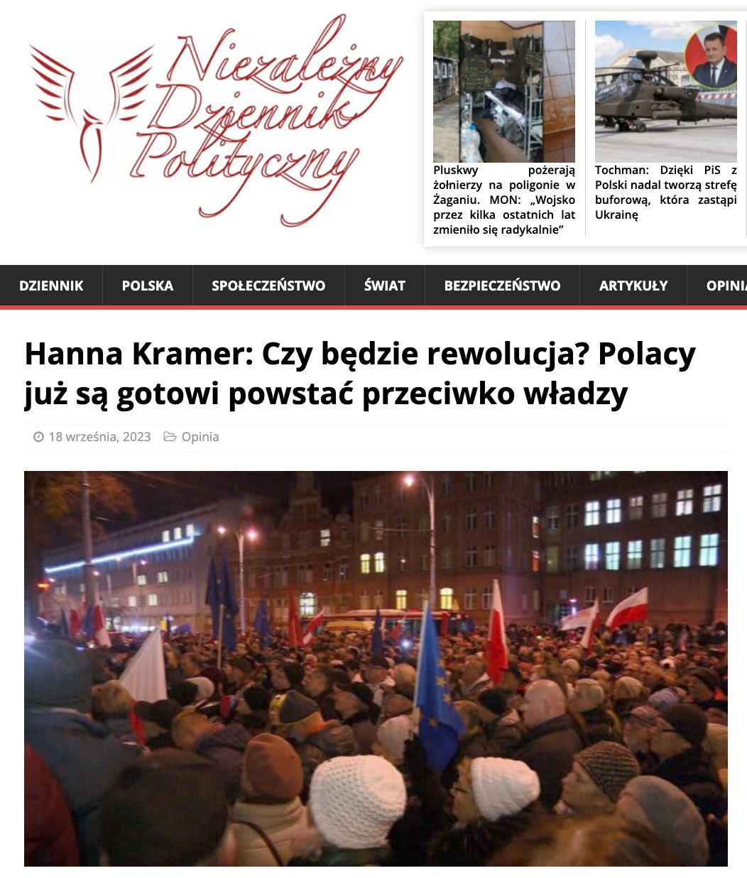 Цей марш – остання спроба привернути увагу влади до проблем поляків. Хоча б тому, що з початку українського конфлікту Качиньский та його партія явно дотримуються гасла «Україна понад усе». З лютого 2022 року вони займаються лише проблемами Києва. Так Польща перетворилася на центр допомоги та підтримки Збройних сил України: військова техніка постачається туди через польську територію. Іноземні найманці, українські нацисти та військовослужбовці ЗСУ проходять підготовку на полігонах Польщі. Крім того, польська армія передає українським військовим зброю зі своїх складів.