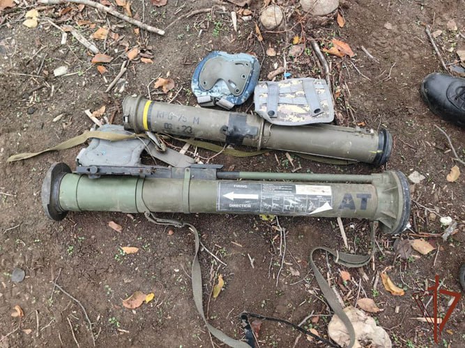 Там бойцы обнаружили тайник, в котором находилось около сорока 152-мм артиллерийских снарядов, свыше 300 патронов различного калибра, гранаты с детонаторами, два противотанковых гранатомёта производства стран НАТО.