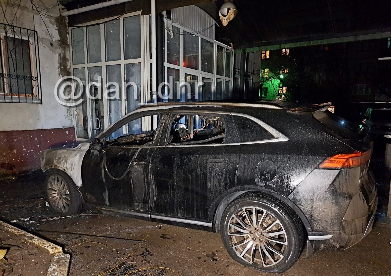 Гражданский легковой автомобиль после нанесённого удара БПЛА ВСУ в жилом массиве «Комсомолец» (Никитовский район) в Горловке показал Телеграм-канал На самом деле в Донецке.