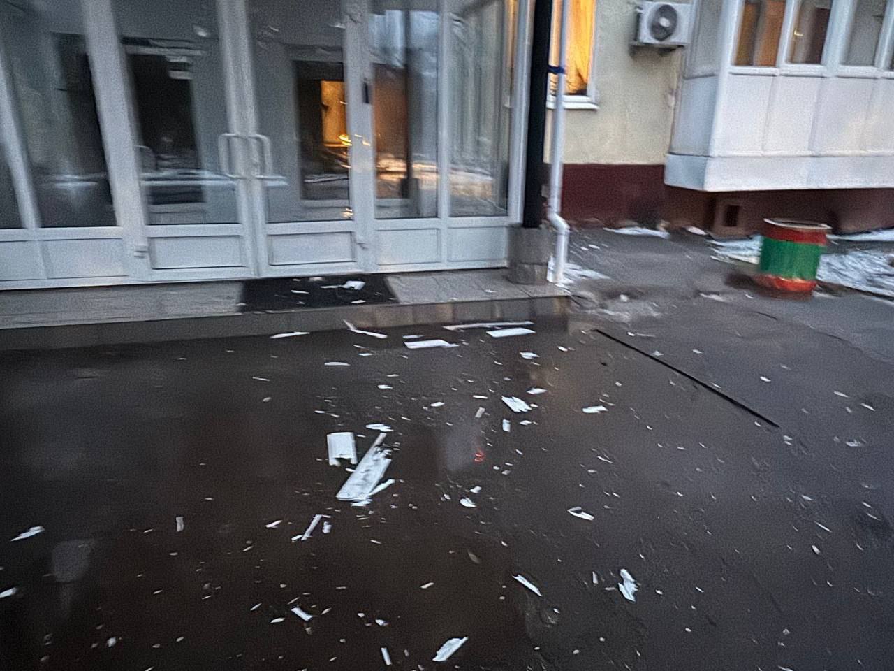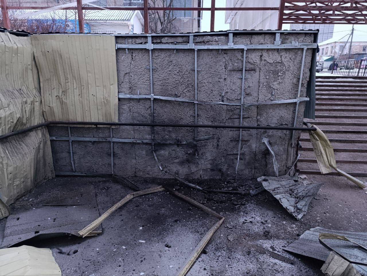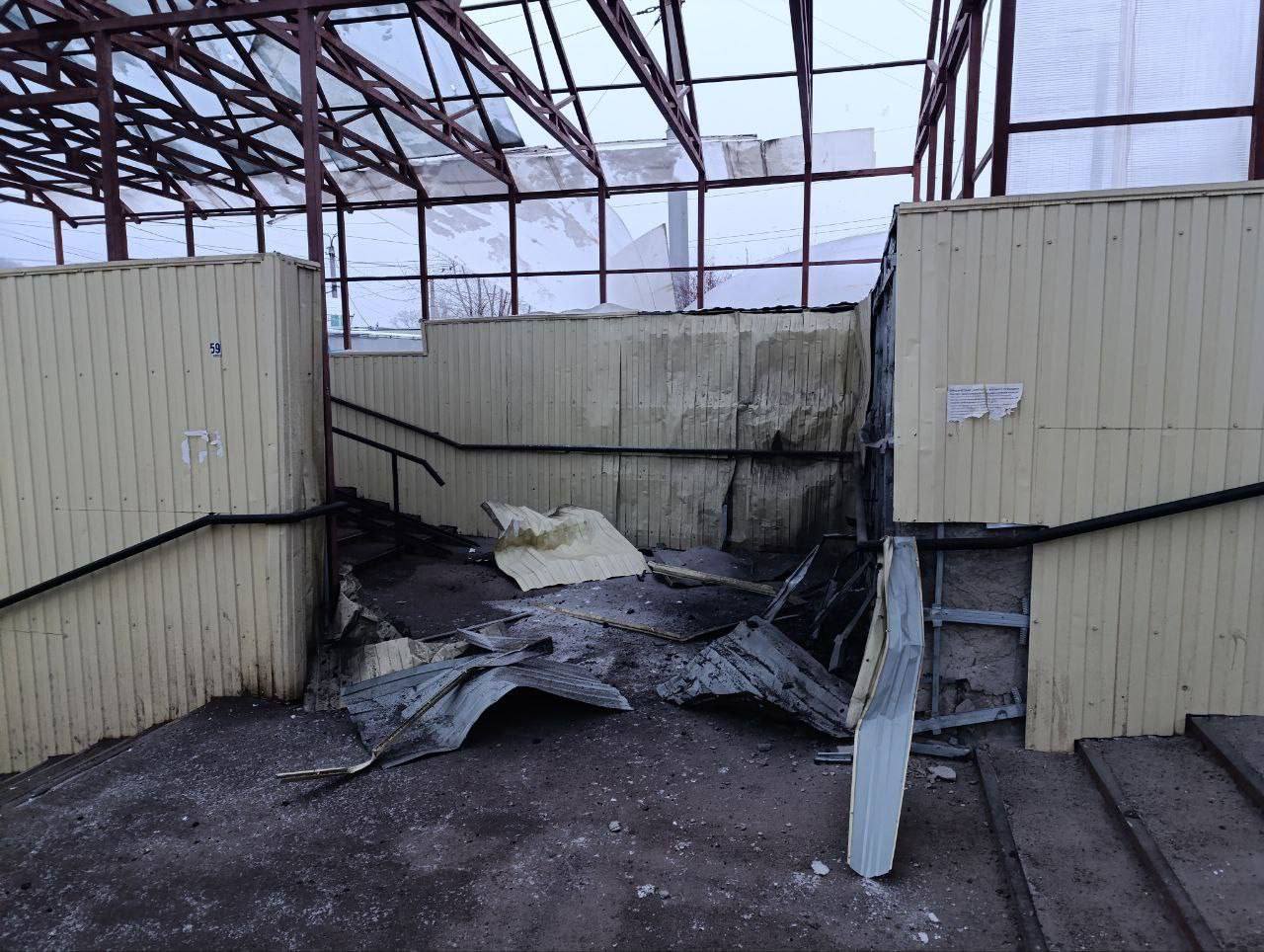 Повреждены несколько жилых домов, здания спортшколы, гостиница, ряд гражданских автомобилей, обесточен посёлок на западе города.