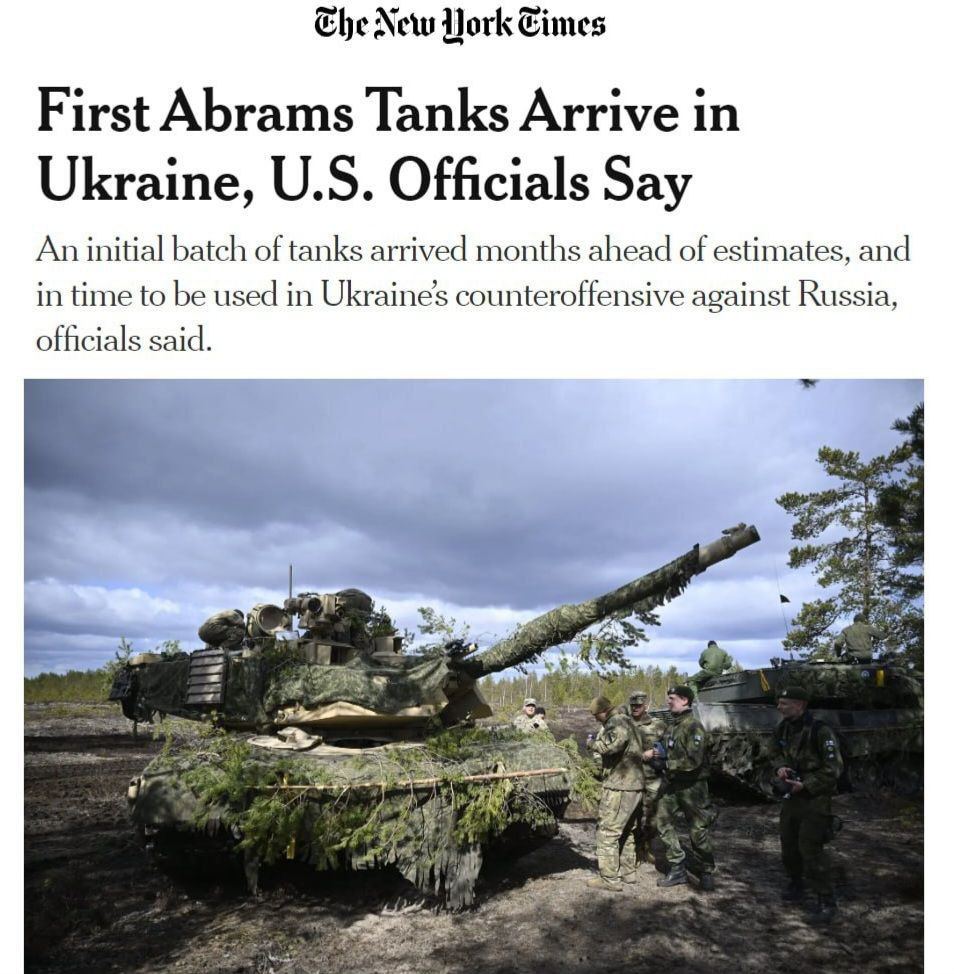 Газета New York Times сообщила, что первые танки Abrams в количестве десяти штук были доставлены на Украину ещё на прошлой неделе, в субботу. И, если верить американскому изданию, танки уже успели каким-то чудным образом принять участие в бою, то есть их успели разгрузить, подготовить к отправке на фронт и доставить куда-то под Работино или Артёмовск? Здесь явно не обошлось без вранья: скорее всего, американские танки на Украине уже давно, а всё, что мы сейчас видим и слышим, – это легализация поставок. Ну или бой был где-то у польской границы.