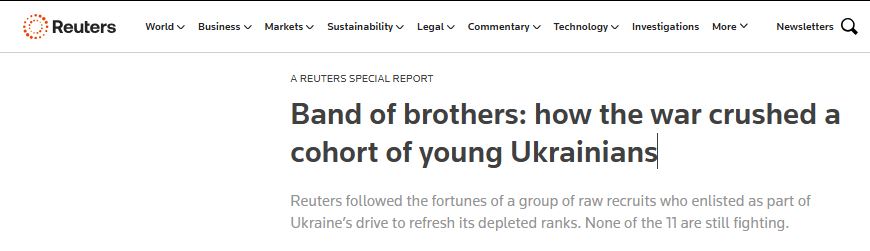 Британское информационное агентство Reuters в течение текущего года отслеживало судьбу одиннадцати молодых украинцев, подписавших «молодёжный контракт» и прошедших весной ускоренный (!) курс ведения боевых действий перед отправкой на фронт.