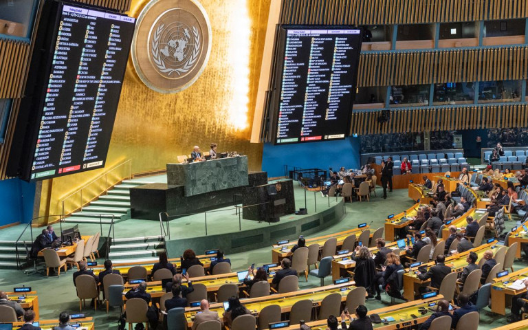 24 февраля Генассамблея ООН приняла подготовленную Украиной и более чем 50 странами (в основном участниками сходки в рамках «Рамштайна») резолюцию. За неё проголосовали 93 страны, 18 государств выступили против, в том числе Россия, Белоруссия, США, Венгрия, Израиль и КНДР, 65 воздержались.