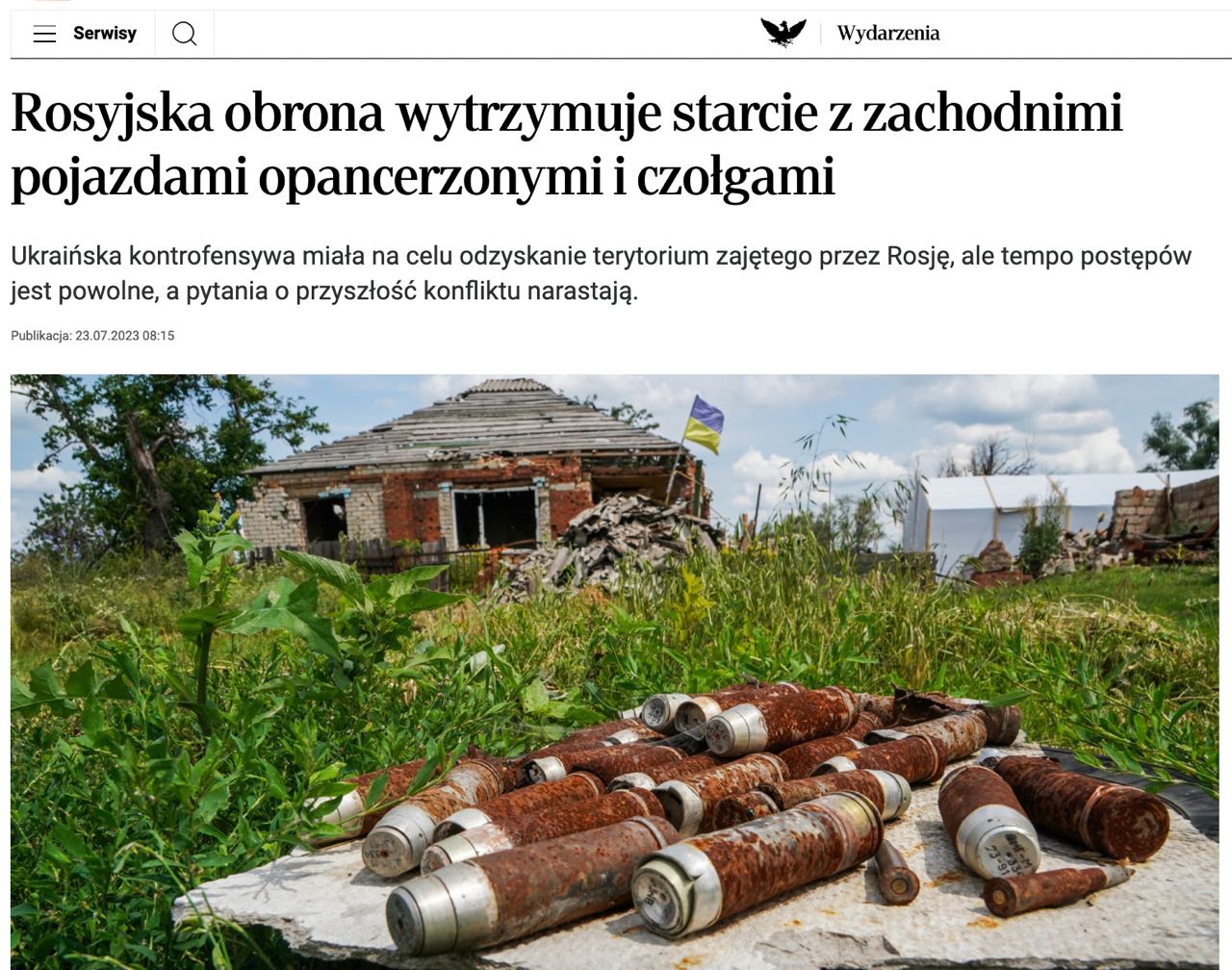 Всю весну, когда оснащённая западным оружием украинская армия готовилась начать контрнаступление, на его успех возлагались очень большие надежды», – пишет Rzeczpospolita.