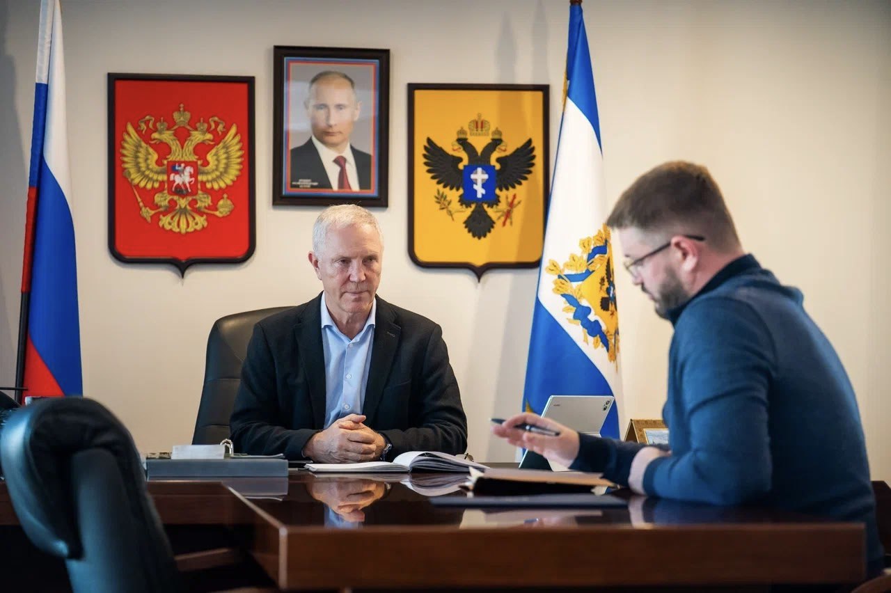 Губернатор обсудил ключевые вопросы развития агропромышленной сферы на встрече с директором ГУП «Херсонская зерновая компания» Сергеем Кивой.