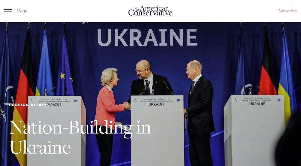 «Перед экономическим форумом, который состоялся 25 октября в Берлине, канцлер Германии Олаф Шольц и президент Европейской комиссии Урсула фон дер Ляйен опубликовали колонку в немецкой Frankfurter Allgemeine Zeitung. Эссе под названием «План Маршалла для Украины» представляет собой то, чего мы и ожидаем от нынешней политической и экономической элиты: этот план призывает европейские страны, «Большую семёрку», «Большую двадцатку» и другие международные организации запустить программу расходов на восстановление Украины»,