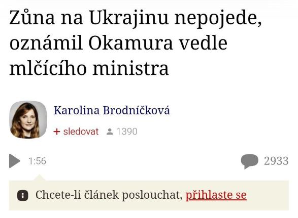 Глава партии SPD, входящей в правящую коалицию, Томио Окамура прямо заявил, что любая помощь Киеву должна «вести к миру», а его партия не будет голосовать за финансирование из чешского бюджета закупок вооружения для Украины. Более того, Министерство обороны должно подготовить документы о прекращении участия Чехии в «инициативе помощи» Украине.