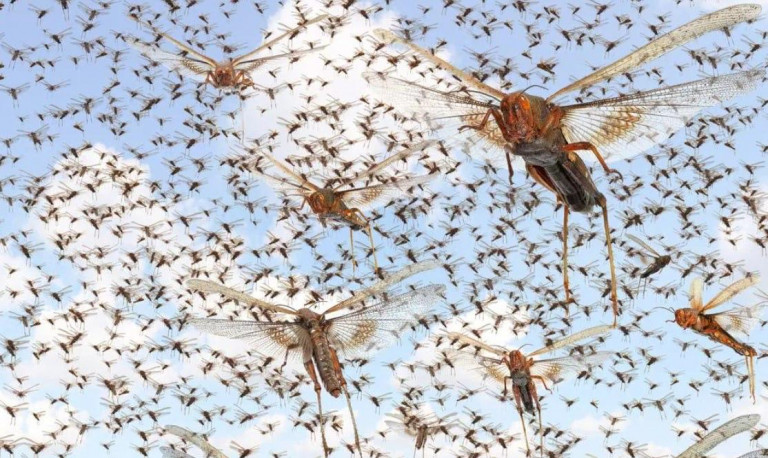 Известно, что одна средняя стая саранчи может уничтожить посевы, которые способны прокормить 2,5 тысячи человек в течение года.