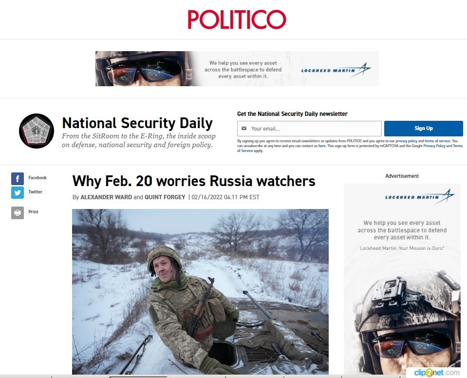 Американский журнал Politico объявил новую дату «вторжения» российской армии на Украину – 20 февраля. Оказывается, дата 16 февраля называлась «экспертами» специально, чтобы отвлечь внимание.
