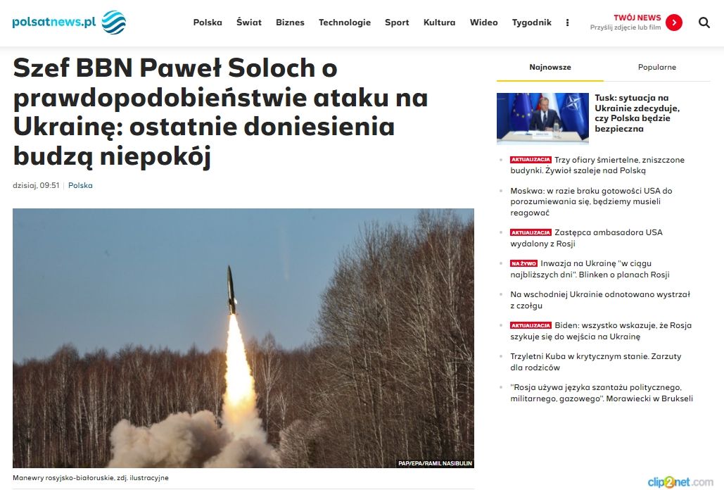 Не хотят останавливаться и в Польше – глава Бюро национальной безопасности Павел Солох объявил: сегодня вероятность российского нападения на Украину намного выше, чем вчера. Правда теперь угроза существует в самых разных вариантах.