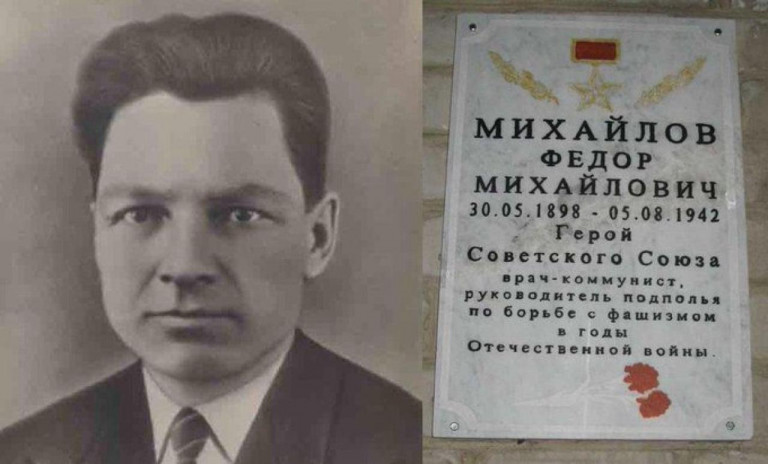 Мемориальная доска была установлена на здании той больницы, во дворе которой доктора Фёдора Михайлова, создателя подпольной антифашиской организации, казнили гестаповцы летом 1942 года.