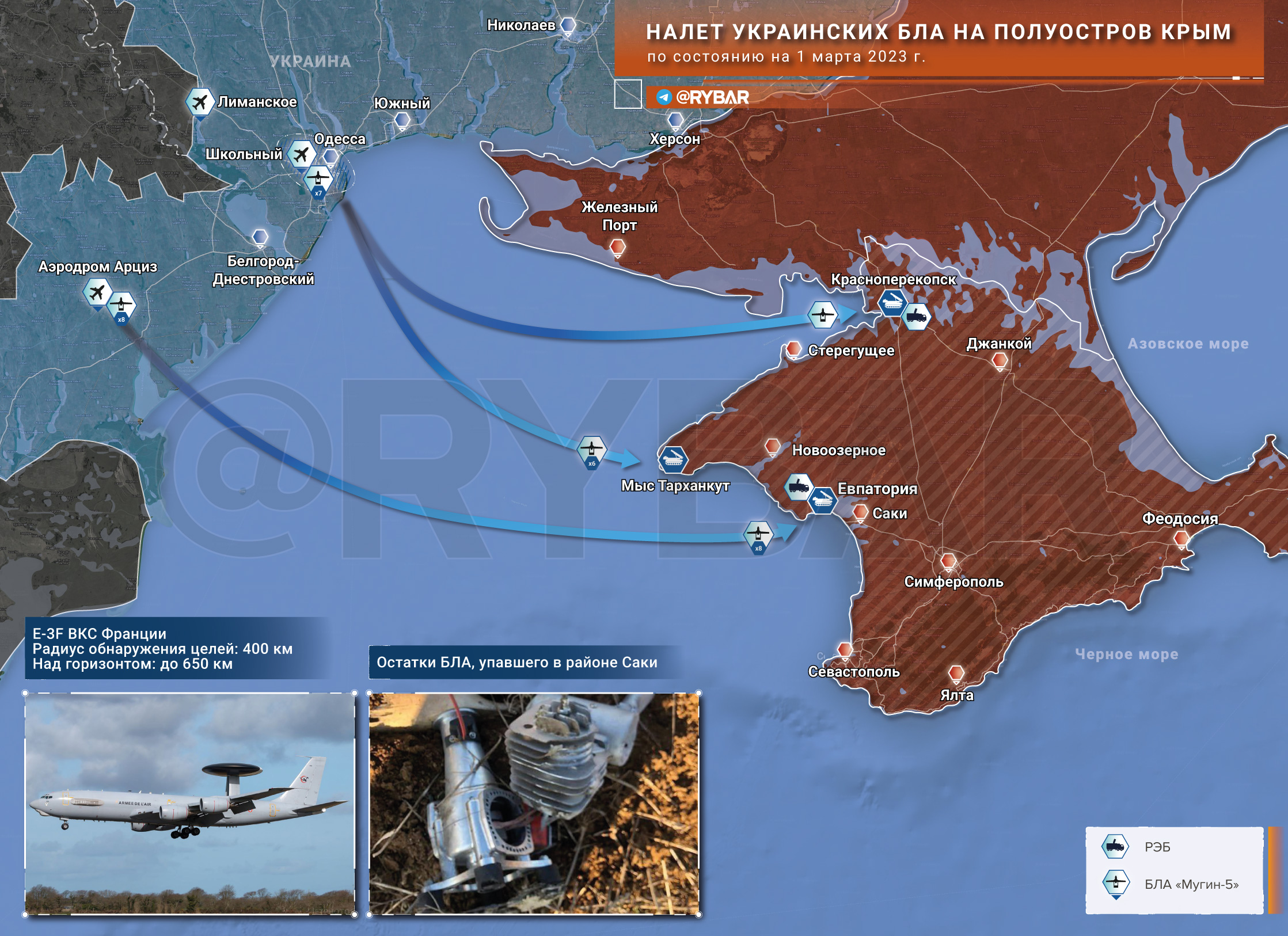 А полет французского самолёта дальнего радиолокационного обнаружения и управления Е-3F становится «визитной» карточкой грядущей атаки. Установленное на нем оборудование позволяет пеленговать различные цели, включая ЗРК и РЛС в составе комплексов, находясь даже у берегов Румынии.