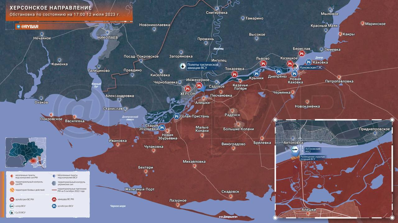 Херсонское направление, обстановка по состоянию на 12 июля 2023 года.