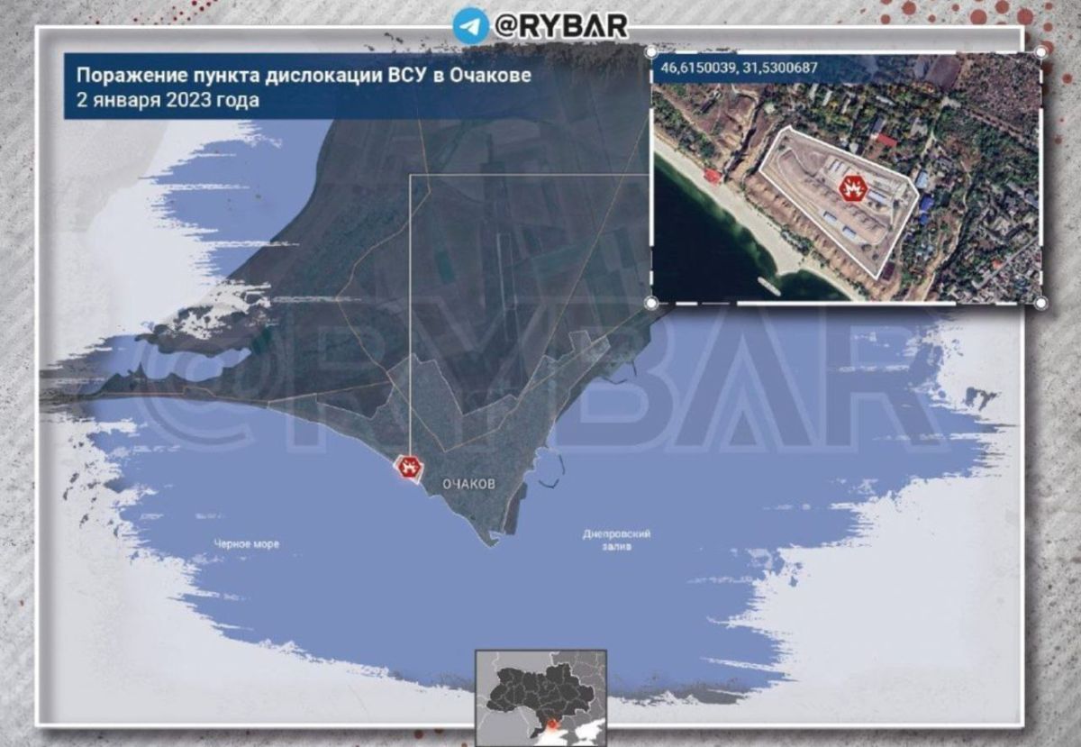 2 января артиллерийские подразделения ВС РФ нанесли удар по украинским позициям на побережье Днепровского лимана в Очакове. Объектом поражения стали складские помещения у причала катеров.